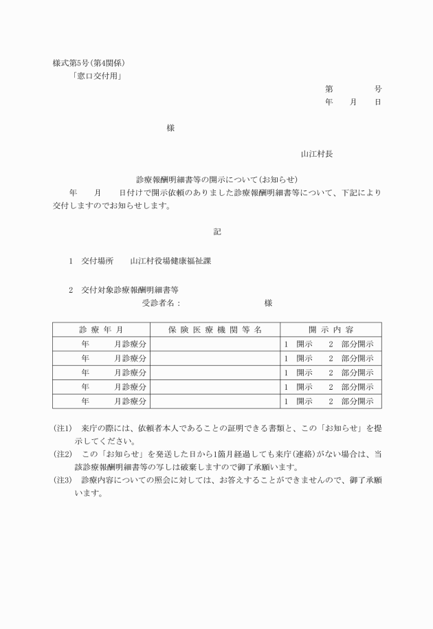 ○山江村診療報酬明細書等の開示に係る取扱要領